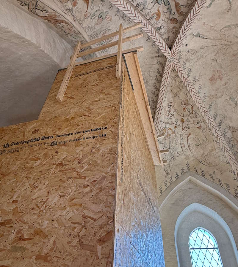 Restaureringen af kalkmalerierne er et specialiseret arbejde, som kræver ro og de rette betingelser. Dem har Michael & Hussnedkeren A/S været med til at skabe.